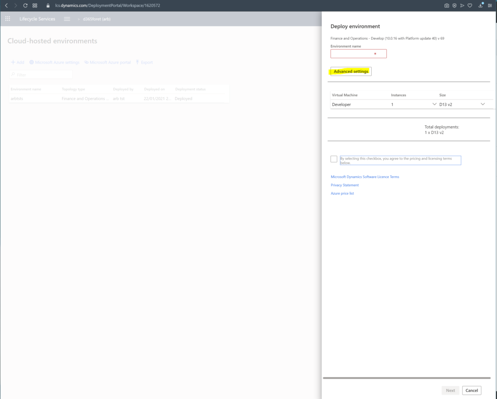 Go to your LCS portal. Open Cloud hosted environments page. Click Add button