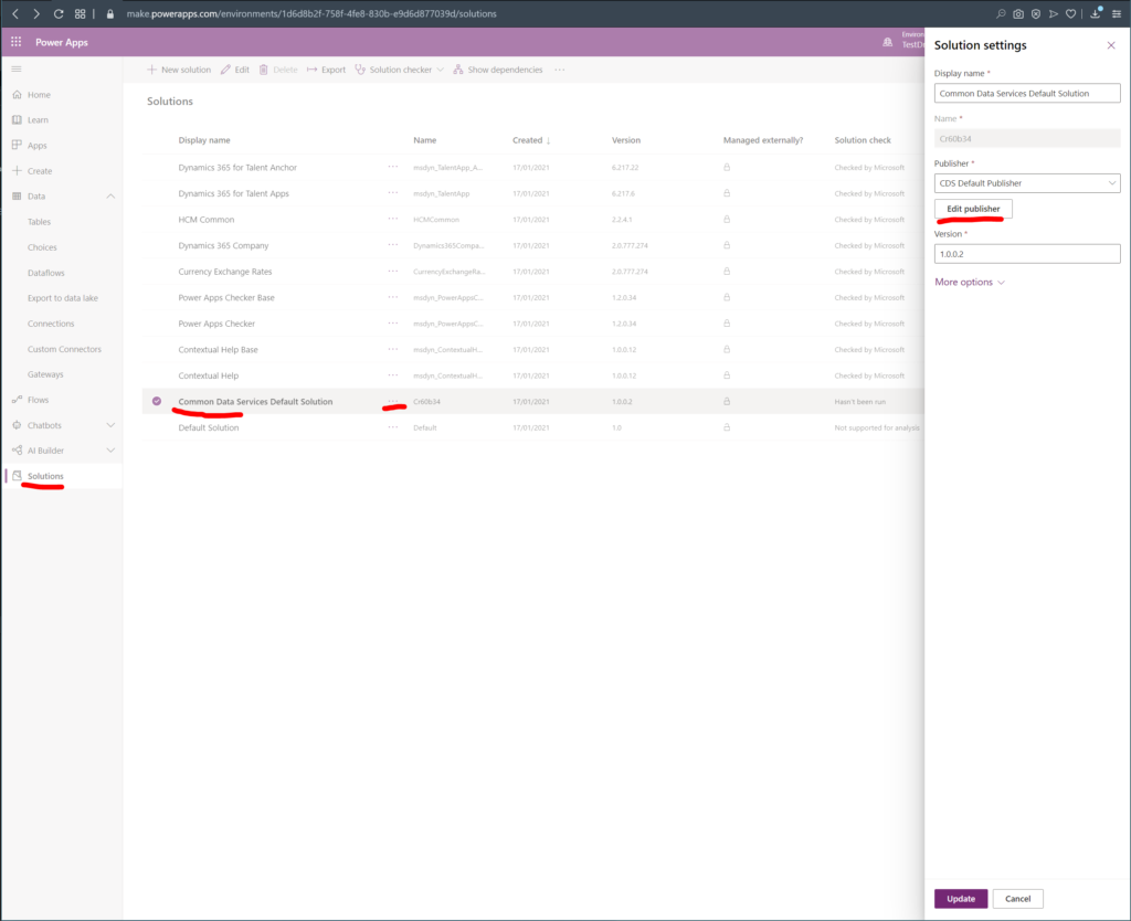 Select your environment > Click solutions on left menu > then go to solutions setting by clicking … menu > settings