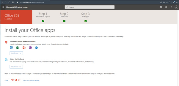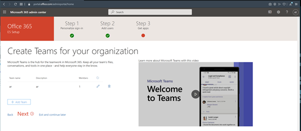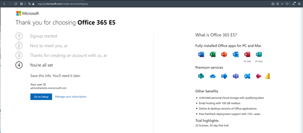 You are ready to go. Click Go to setup button to open Office365 Admin portal .