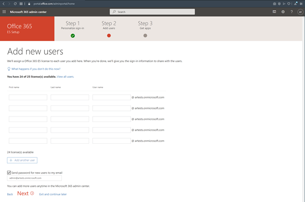 You can now create new users in this domain. We’ll use this for setting up different environments later. You have 25 licenses during the 30 day trial period.