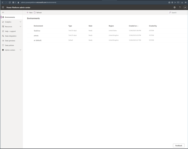https://admin.powerplatform.microsoft.com/environments?geo=Na