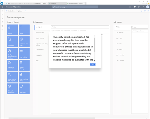 Otherwise, to be sure, you should open data management workspace > Framework parameters > Entity settings. And click Refresh the entity list.