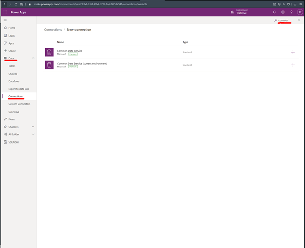 Go to connections menu and click Create a connection button . Put in common word in search and select connector.