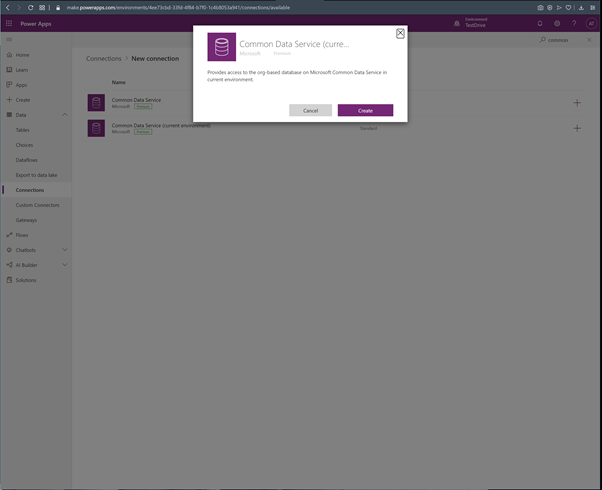 Do the same for dynamics. Select dynamics 365 Fin & Ops connector then click Create button.