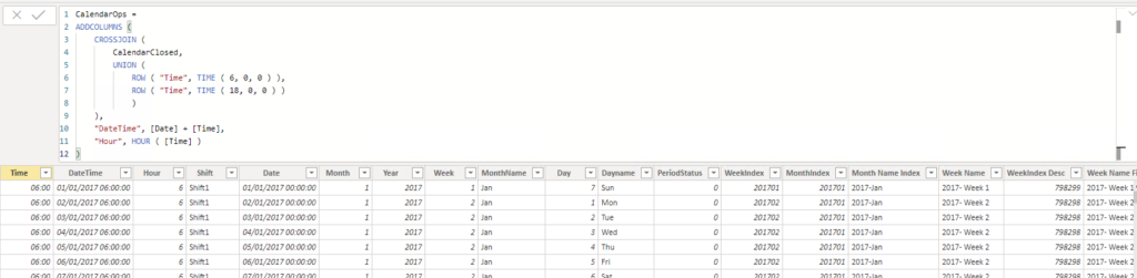 Power BI Extend Calendar with Shifts or hours